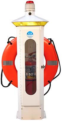 Created as a complete solution for fire and rescue needs, this pedestal features fire extinguisher storage and a mounted alarm strobe light and siren, as well as an optional life ring. This unit is well equipped for any marina emergency. The alarm strobe light and siren can be automatically activated when the door is open or optional life ring is removed.